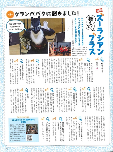 2024年4月10日 | 雑誌「Band Journal(5月号)」(音楽之友社)でズーラシアンブラス新連載スタートしました。![]() ![]() |