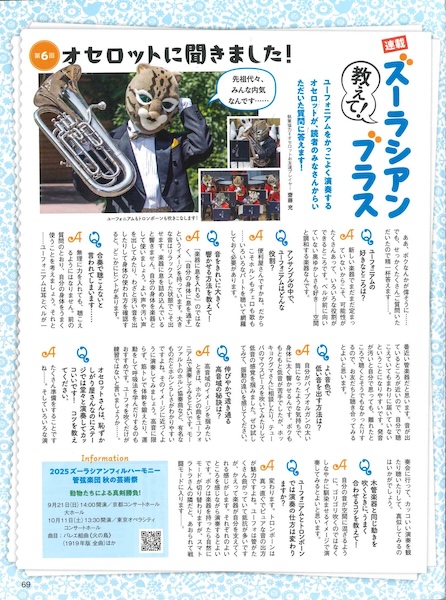 2025年9月10日 | 雑誌「Band Journal(10月号)」(音楽之友社)でズーラシアンブラス連載が掲載されました。![]() ![]() |
